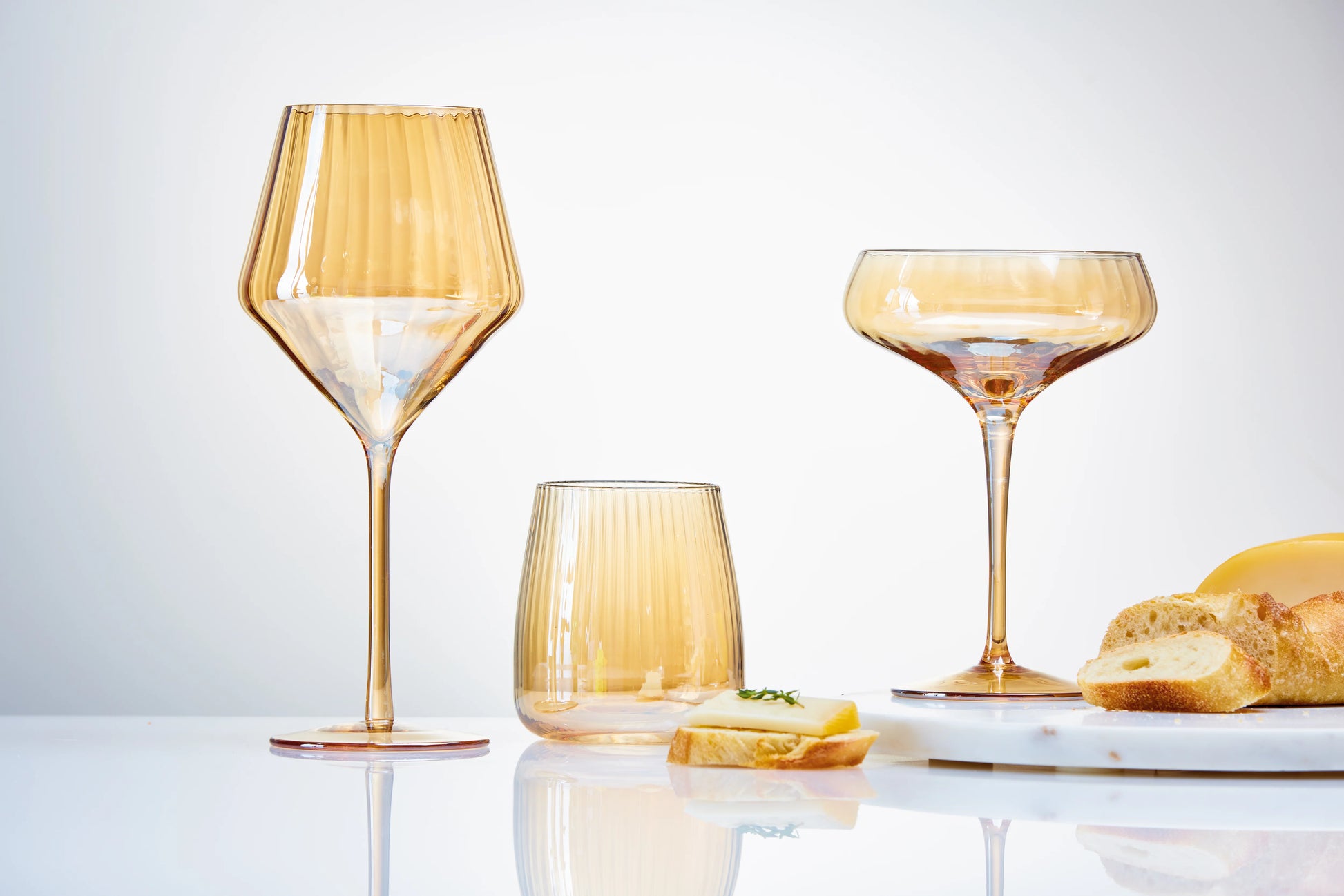 These iridescent optic wine glasses are a unique and stylish addition to your glassware collection. Made from soda lime glass, they feature an iridescent optic design in amber. The amber color is perfect for any occasion. These wine glasses are sure to turn heads at your next gathering.