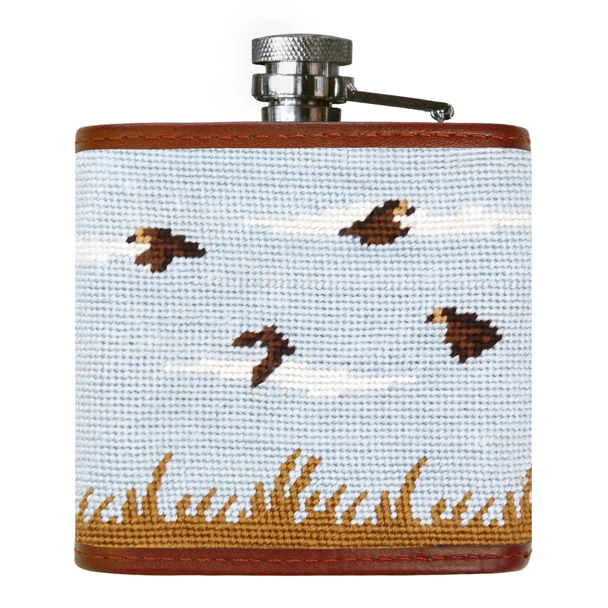 The Smathers and Branson 6oz stainless steel needlepoint flask is sure to get the party started (or keep it going) with style. Our signature needlepoint is trimmed with full grain Italian leather and is permanently fixed around the flask. There is not a better accessory for your back pocket wherever the party may take you. CHEERS!